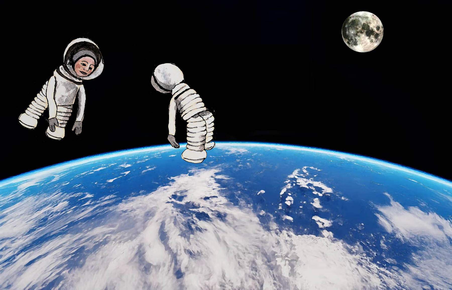 Zwei Astronaut*innen begeben sich auf eine Reise ins All. Sie erleben die Schwerelosigkeit und betrachten die Erde aus der Ferne. Vorbei an verschiedenen Himmelskörpern stellen sie sich die Frage: Könnte man hier leben?