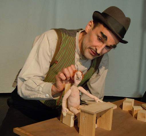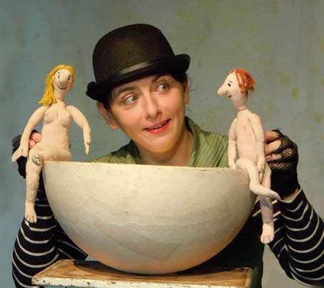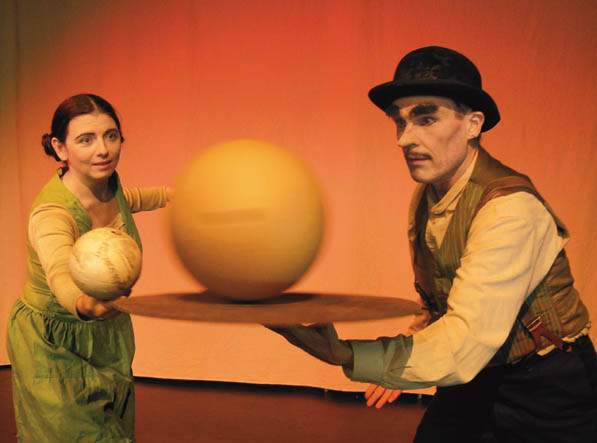 Zwei clowneske Figuren ziehen Zettel aus dem Hut auf denen Titel von Geschichten stehen wie : „Warum sind die Sterne aus Blumen gemacht?“, „Vom Zauberer, der alles herzaubern konnte“ oder „Was war, als es die Welt noch nicht gab?“ Im Handumdrehen spinnen sie aus diesen Titeln mit wenigen Requisiten gespielte verrückte Geschichten. Sie spielen das große Nichts, lassen die Planeten entstehen und umeinander tanzen. Die Frau läßt die Menschen aus einem riesigen Ei kriechen, und zeigt, wie eine Göttin einmal die Welt erschaffen hat. (Gott hat die Tiere später angeblich nur auf die Erde gebracht). Nein, es sei ein großer Zauberer gewesen, der die Welt aus seinem Ärmel geschüttelt habe, behauptet der Mann.
